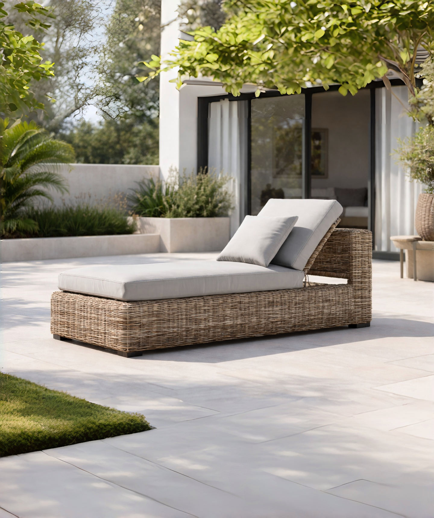 Ce bain de soleil de jardin est conçu pour la détente en extérieur, sur une terrasse ou dans le jardin. Sa structure en rotin tressé brun clair assure stabilité et résistance aux conditions extérieures, tandis que le revêtement textile gris clair offre un confort agréable. Le dossier réglable permet d’adapter l’inclinaison selon les besoins. Livré prêt à l’emploi, il mesure 190 × 70 × 82 cm et nécessite un entretien simple avec un chiffon humide.