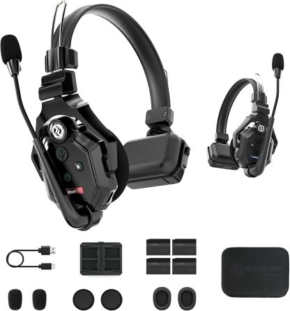 Hollyland Solidcom C1 Casque de Communication sans Fil Système Intercom Duplex Intégral 2 Utilisateurs Portée 350m Communication d'Équipe Casques à Oreille Unique avec 1 Maître et 1 Casque Esclave
